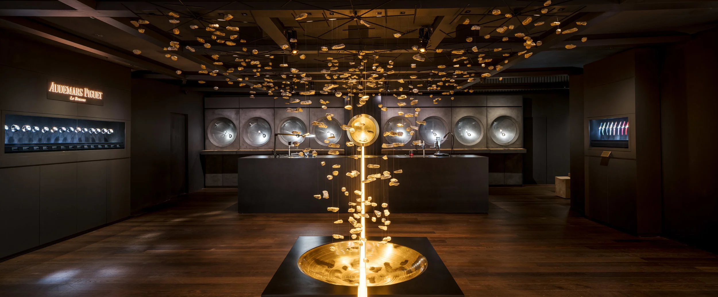 Titled Foundations, Errazuriz’s immersive design for 2018 and the finale in his trilogy for Audemars Piguet, is based on iron ore, the natural resource which started it all. The dynamic installation suspends hundreds of pieces of 3D-printed scanned and hand-moulded rocks from the Vallée de Joux, home of Audemars Piguet in the Swiss Jura Mountains, rotating and moving in perfect synchrony. Evolving from his two previous years’ lounge concepts inspired by two other core natural materials essential to the Vallée de Joux, ice (Ice Cycle, 2016) and wood (Second Nature, 2017), this year’s lounge takes the natural element of iron ore as its point of departure when it became among the principal resources for watchmakers, enabling the craft to thrive.